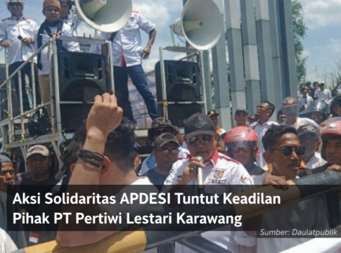 07/04/2026.Sejumlah kepala desa yang tergabung dalam Asosiasi Pemerintah Desa Seluruh Indonesia (APDESI) Kabupaten Karawang menggelar aksi solidaritas guna menuntut keadilan terhadap pihak PT Pertiwi Lestari. Aksi tersebut berlangsung dengan tertib dan mendapat pengawalan aparat keamanan, sebagai bentuk penyampaian aspirasi atas dugaan persoalan yang melibatkan perusahaan dengan masyarakat desa.