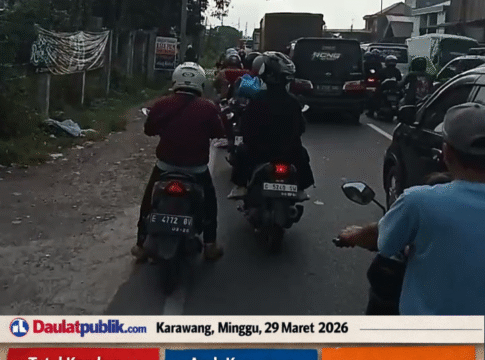 Volume arus balik libur Idulfitri 1447 H/2026 M menuju Jabodetabek dan Jawa Barat masih mengalami peningkatan pada Minggu (29/03/2026). Lonjakan kendaraan datang dari berbagai arah, mulai cierebon dan sekitarnya , jurnalis daulat publik- Ratna mengungkapkan, total 186.207 kendaraan kembali menuju Jabodetabek melalui jalur Pantura menuju krawang . Jumlah ini meningkat 24,29 persen dibandingkan volume lalu lintas normal yang tercatat sebanyak 151.031 kendaraan.