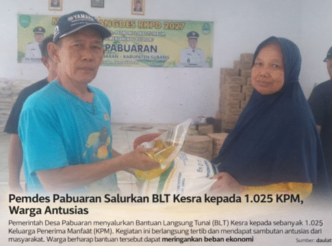 Pemerintah Desa Pabuaran, Kecamatan Pabuaran, Kabupaten Subang menyalurkan Bantuan Langsung Tunai Kesejahteraan Rakyat (BLT Kesra) kepada 1.025 Keluarga Penerima Manfaat (KPM), Senin (7/4/2026).